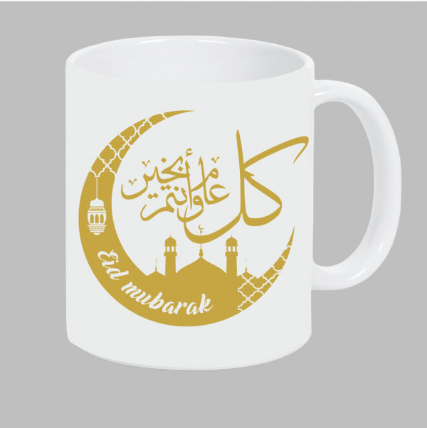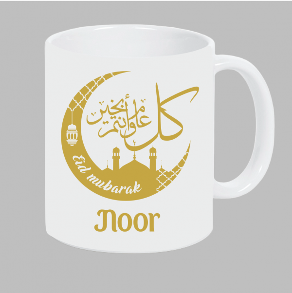 Maak je momenten extra speciaal met deze unieke beker met een maan en moskee en de tekst Eid Mubarak. Een prachtig cadeau voor Eid Mubarak, Ramadan of gewoon om iemand te verrassen. Er kan een naam worden toegevoegd om de beker nog meer te personaliseren. De inhoud van de beker is 320 ml. Keuze uit een gouden opdruk of een zwarte opdruk.