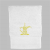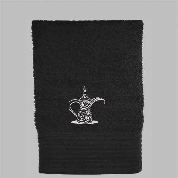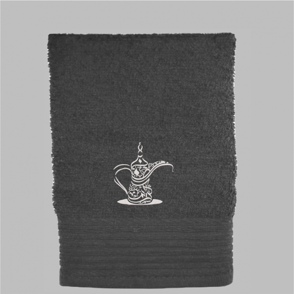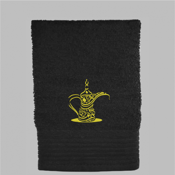 Maak deze Eid onvergetelijk met een geschenk dat luxe en traditie combineert. Deze handdoek is niet zomaar een gebruiksvoorwerp, maar een prachtig gedecoreerd stuk vakmanschap. Centraal op de handdoek prijkt een prachtig geborduurde Dallah, hét symbool voor Arabische gastvrijheid en traditie. Het ontwerp is opgebouwd uit verfijnde kalligrafische lijnen in een glanzende goudkleur, wat zorgt voor een koninklijk contrast. De Dallah is 19cmx19cm hoog.