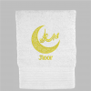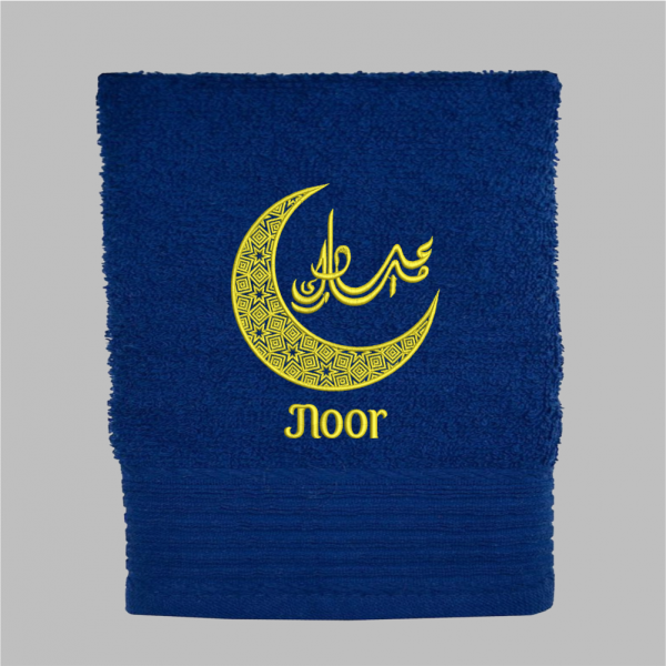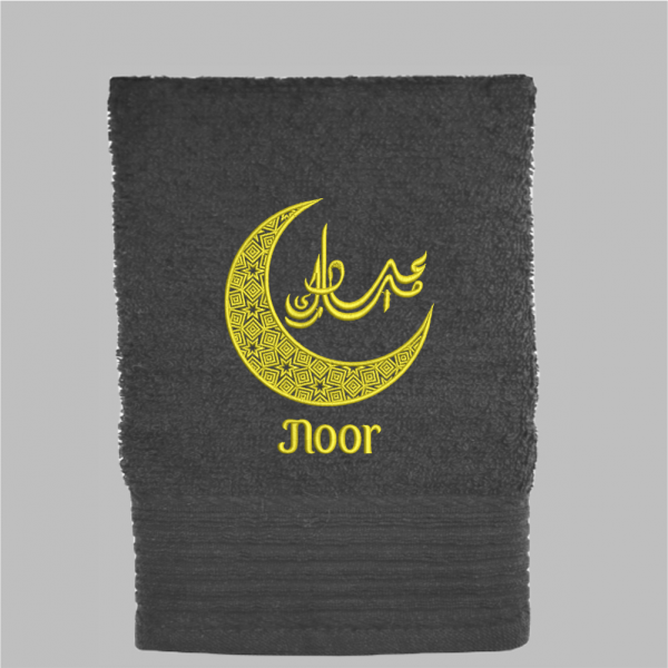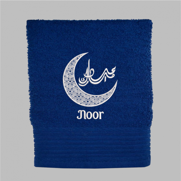 Deze handdoek is voorzien van een prachtig gedetailleerde halve maan, symbool voor licht en nieuwe begin, met daarin de tekst ‘Eid Mubarak’ in elegant Arabisch schrift. De handdoek kan worden gepersonaliseerd met een naam. Geef dit jaar een cadeau met betekenis. Geen vluchtig presentje, maar een duurzame, geborduurde handdoek die elke dag een glimlach op het gezicht van de ontvanger tovert.