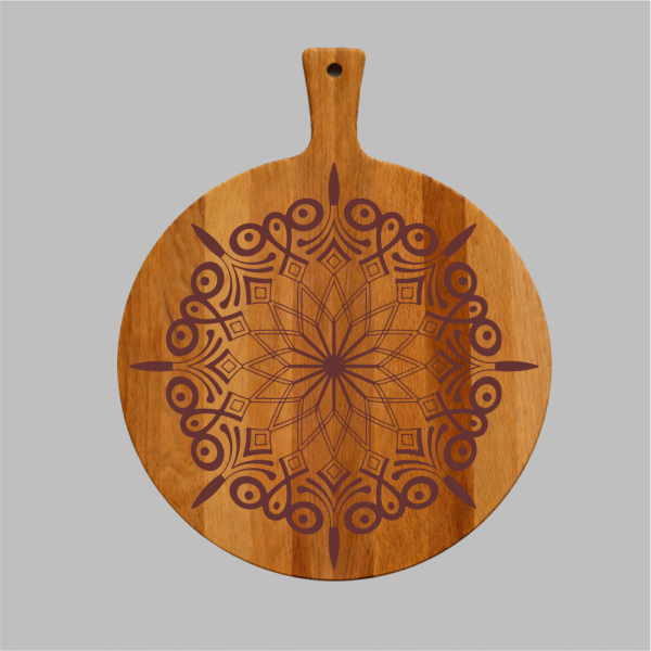 Vier bijzondere momenten met deze prachtige gegraveerde houten borrelplank, verfijnd met een elegant mandala-achtig patroon. De gravure geeft de plank een luxe en tijdloze uitstraling, perfect passend bij feestelijke gelegenheden zoals Eid Mubarak (Suikerfeest), maar ook bij verjaardagen, housewarming, bruiloften of als stijlvol relatiegeschenk.