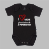 Het rompertje of T-shirt is verkrijgbaar in de maten 50-92. Bij het rompertje is er een keuze uit zwart of wit. Aan de bovenkant van het shirtje zitten knoopjes, zodat het hoofdje makkelijk door het shirtje gaat.