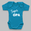 Op dit rompertje staat de tekst: Super opa. Het rompertje is verkrijgbaar in korte mouwen in de maten 50-92. Er zijn meerdere kleuren beschikbaar. Elk shirt wordt handgemaakt in onze studio en kunnen daardoor per stuk licht afwijken van de foto’s. Geen massaproduktie bij ons, alleen maar aandacht voor een uniek produkt.