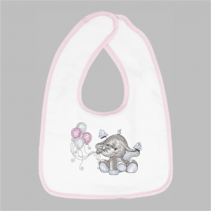 Slabbetje met Pijlen . Het slabbetje is verkrijgbaar in 3 kleuren: wit/roze, wit/blauw en wit/wit. Deze slab is lekker zacht door de stofdikte van 45o grams en 100% katoen. De afmetingen zijn 26x37cm. Het slabbetje wordt vastgemaakt in de nek met klittenband. Leuk om te geven, nog leuker om te krijgen.