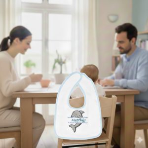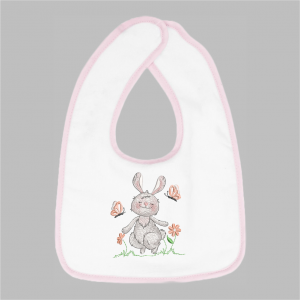 Slabbetje met een geborduurde vos. Het slabbetje is verkrijgbaar in 3 kleuren: wit/roze, wit/blauw en wit/wit. Deze slab is lekker zacht door de stofdikte van 45o grams en 100% katoen. De afmetingen zijn 26x37cm. Het slabbetje wordt vastgemaakt in de nek met klittenband. Leuk om te geven, nog leuker om te krijgen. De slab kan gepersonaliseerd worden met een naam.