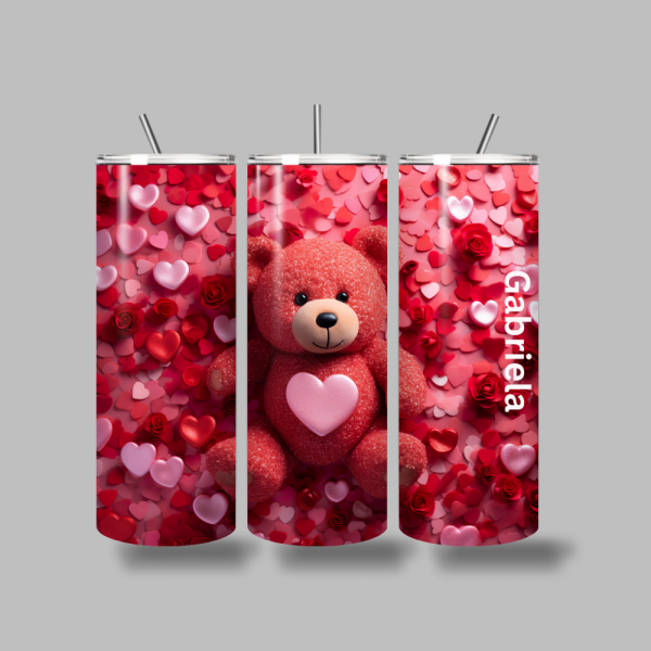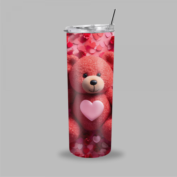 Verwarm je hart bij elke slok. Deze prachtige tumbler met een schattige rode teddybeer is de ultieme uiting van liefde en gezelligheid. Gehuld in een zee van glinsterende hartjes en romantische rozen, is dit het perfecte cadeau voor een speciaal iemand (of gewoon voor jezelf!).