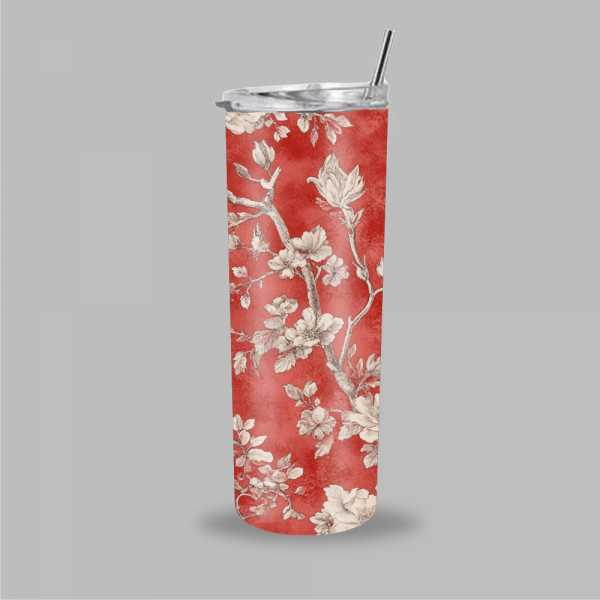 Deze prachtige tumbler combineert een tijdloos, handgetekend botanisch ontwerp met een diepe, robijnrode achtergrond. Of je nu onderweg bent naar je werk, een wandeling maakt of thuis geniet van een momentje voor jezelf, deze tumbler is de perfecte mix van stijl en functionaliteit. Deze thermosfles van roestvrijstaal is duurzame, handige en stijlvolle keuze. Je hebt geen wegwerpplastic meer nodig en je houdt je drinken goed warm of juist heel koud. Het unieke van deze fles is dat het een dop heeft met een rietje, waardoor je makkelijk uit de fles kan drinken zonder te morsen. De dop is van af te draaien, zodat je de beker goed schoon kan maken. De inhoud is 590 ml.