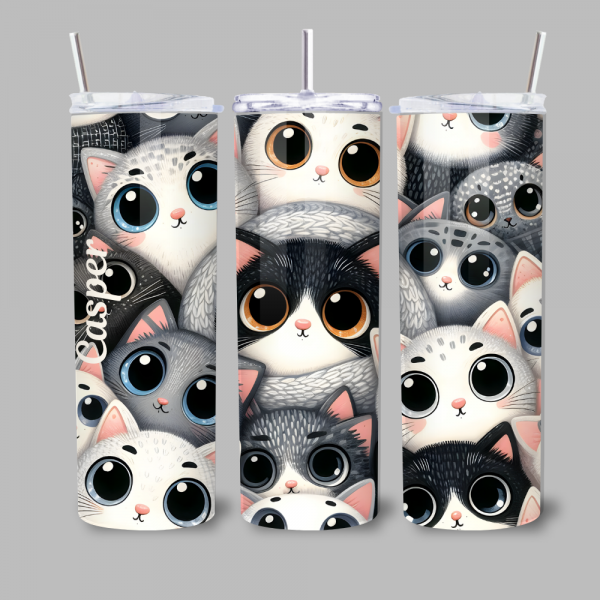 Maak kennis met je nieuwe favoriete drinkmaatjes! Deze tumbler staat volledig in het teken van schattige katjes. Het design bevat een speelse stapel van verschillende kittens in zachte grijstinten, zwart en wit, die samen een hartverwarmend patroon vormen. Perfect voor op school, tijdens je werk of gewoon gezellig thuis op de bank.